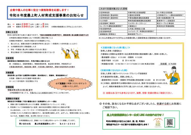 令和8年度最上町人材育成支援事業について