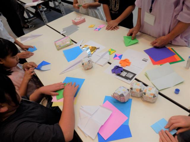 折り紙や紙飛行機は学年に関係なく作り方を教え合い、上手にできると一緒に転がしてみたり飛ばしてみたり…、何個も作って遊んでいました。カルタも、方言カルタや大型カルタなどいろいろな種類を用意して、子どもが読み札を読み、絵札を取るのは大人も加わって…と、盛り上がっていました。